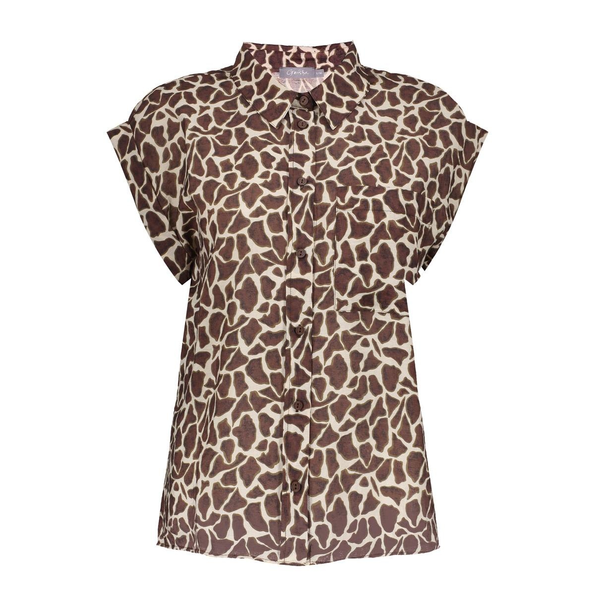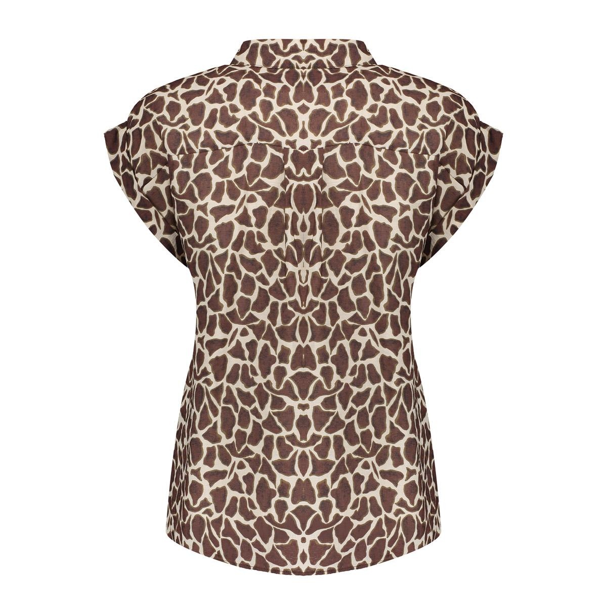 Deze blouse uit onze S26-1 collectie is een stijlvolle statement piece met een moderne animal print. Het heeft een klassieke kraag en een volledige doorknoop. De aangeknipte mouwen met subtiele omslag zorgen voor een luchtige look, terwijl de taille subtiel getailleerdeerd wordt door de rechte pasvorm. De blouse leent zich perfect voor zomerse festivalletjes en of diners.