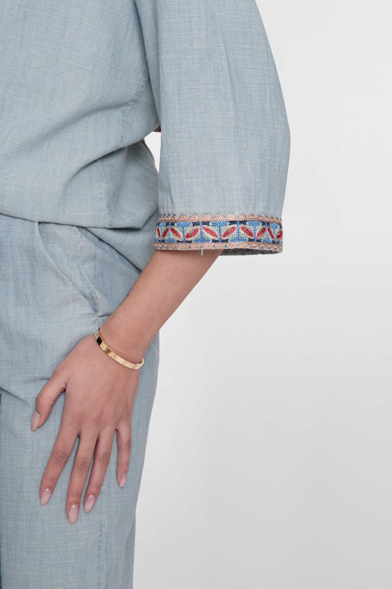 Geisha Blouse Chambray with Tape Jeansblue