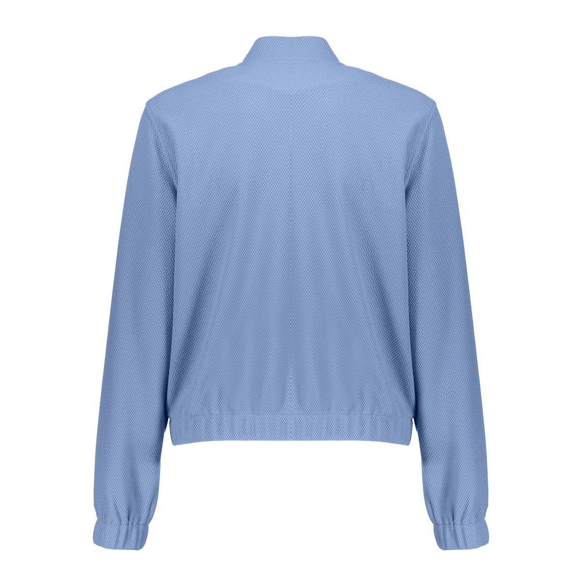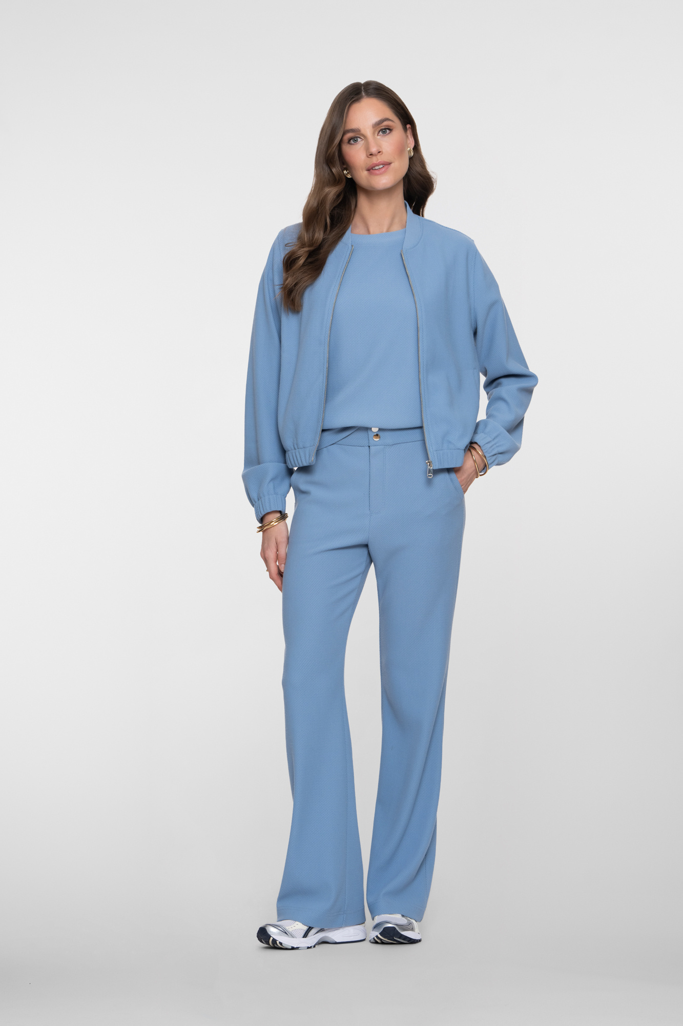 Deze bomberjack uit onze S26-1 collectie is uitgevoerd in een zachte lichtblauwe tint met een verfijnde structuurstof. Het jasje heeft een korte valling, een ritssluiting en elastische boorden voor een moderne, vrouwelijke fit. Ideaal voor overdag, van werk tot citytrip, en perfect te combineren als stijlvol co-ord set of los over een top.