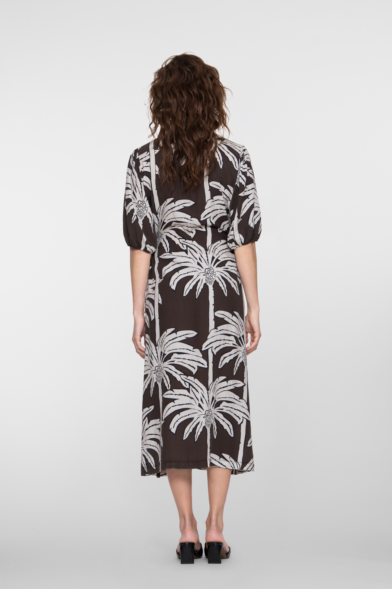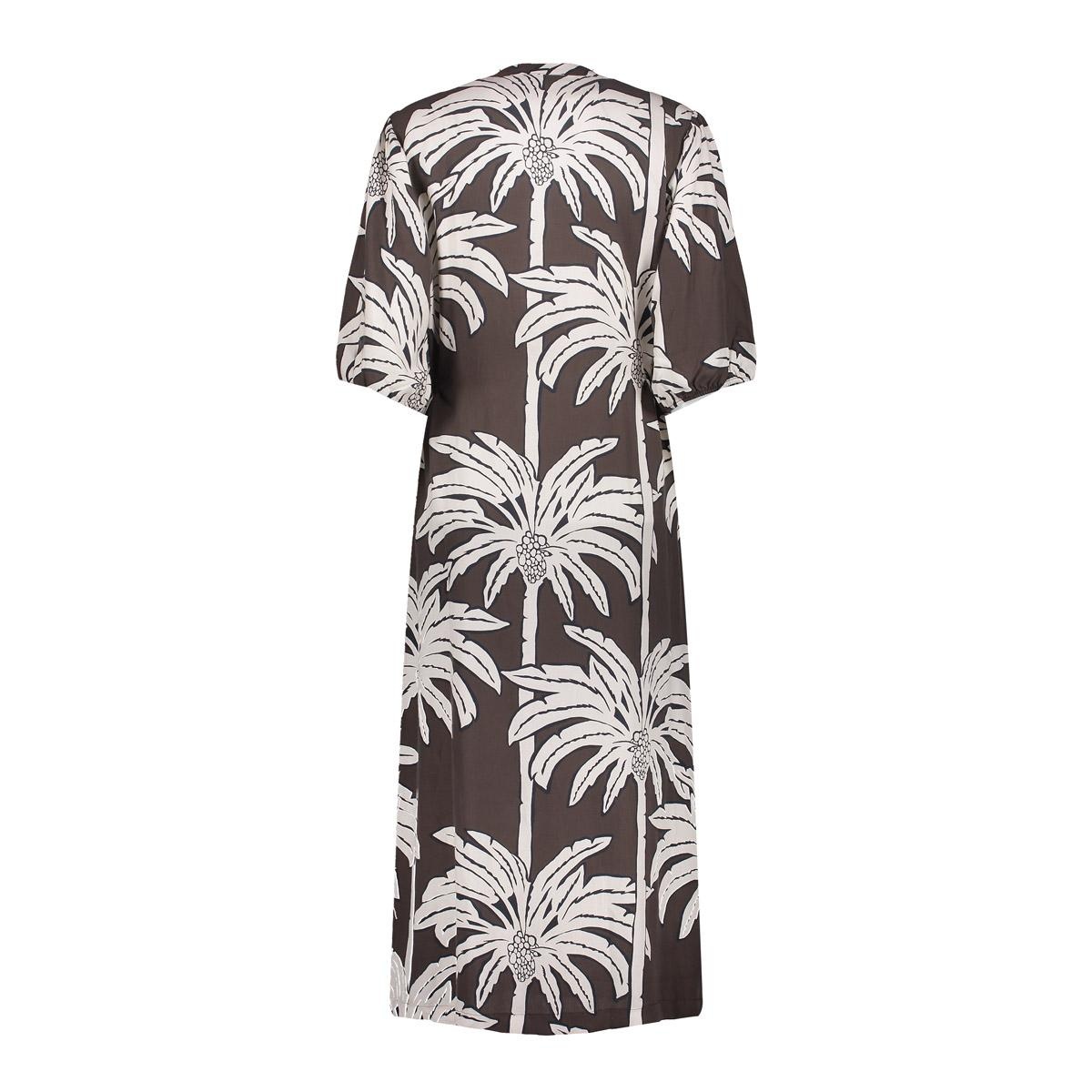 Deze jurk uit onze S26-1 collectie is een elegante maxi jurk met palmprint. De ronde hals en volledige doorknoopsluiting geven een flowy effect. De korte mouwen met elastiek en zijstrikjes accentueren speels de taille. Een jurk voor zonnige dagen en stijlvolle momenten.