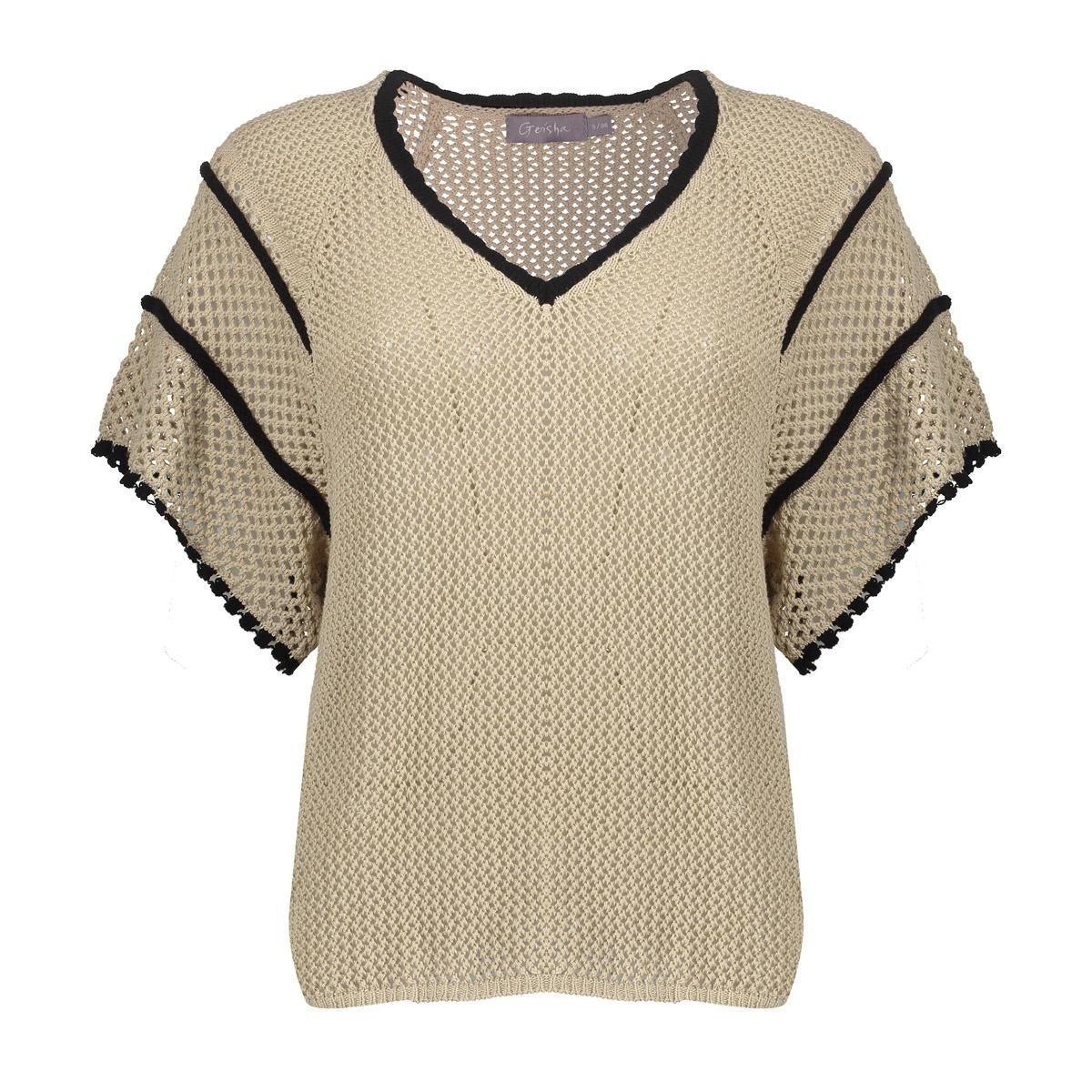 Geisha Pullover Raglan V-Neck Light Sand Black