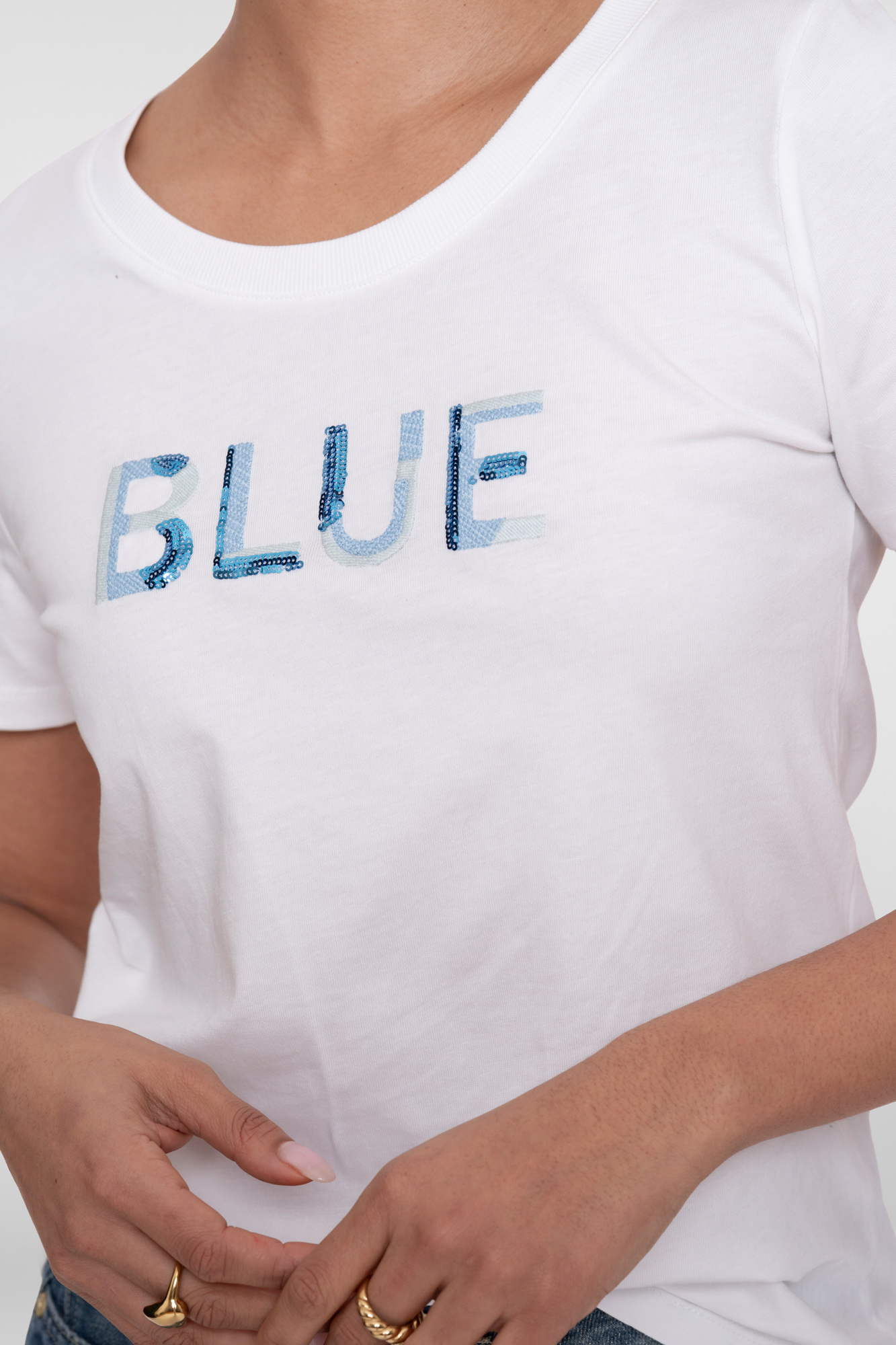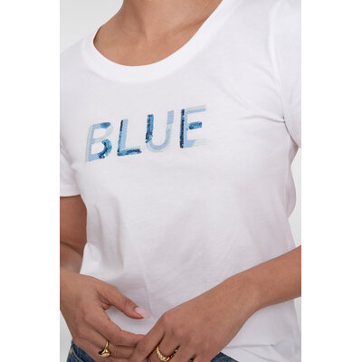 Geisha T-Shirt Blue Sequences Off White Blue
