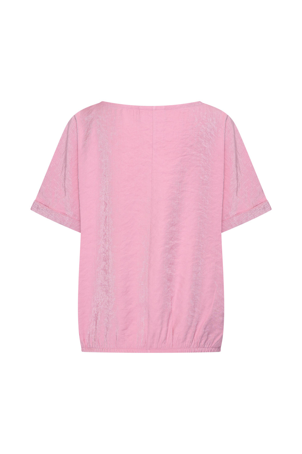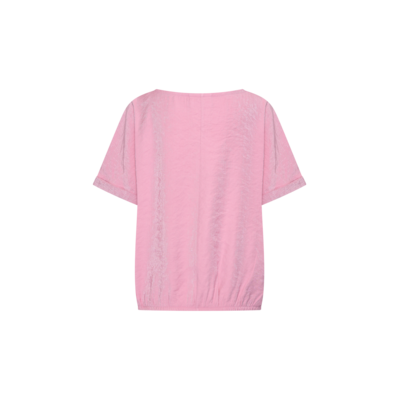 Top Row is onze basic top met korte mouw. Als verfijnd detail een mooie omslag aan het mouw einde. Te dragen onder een blazer of los.