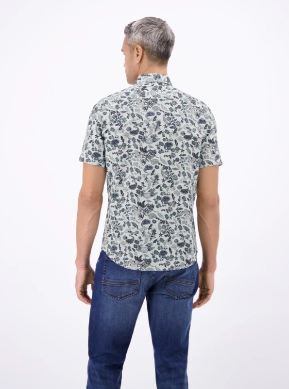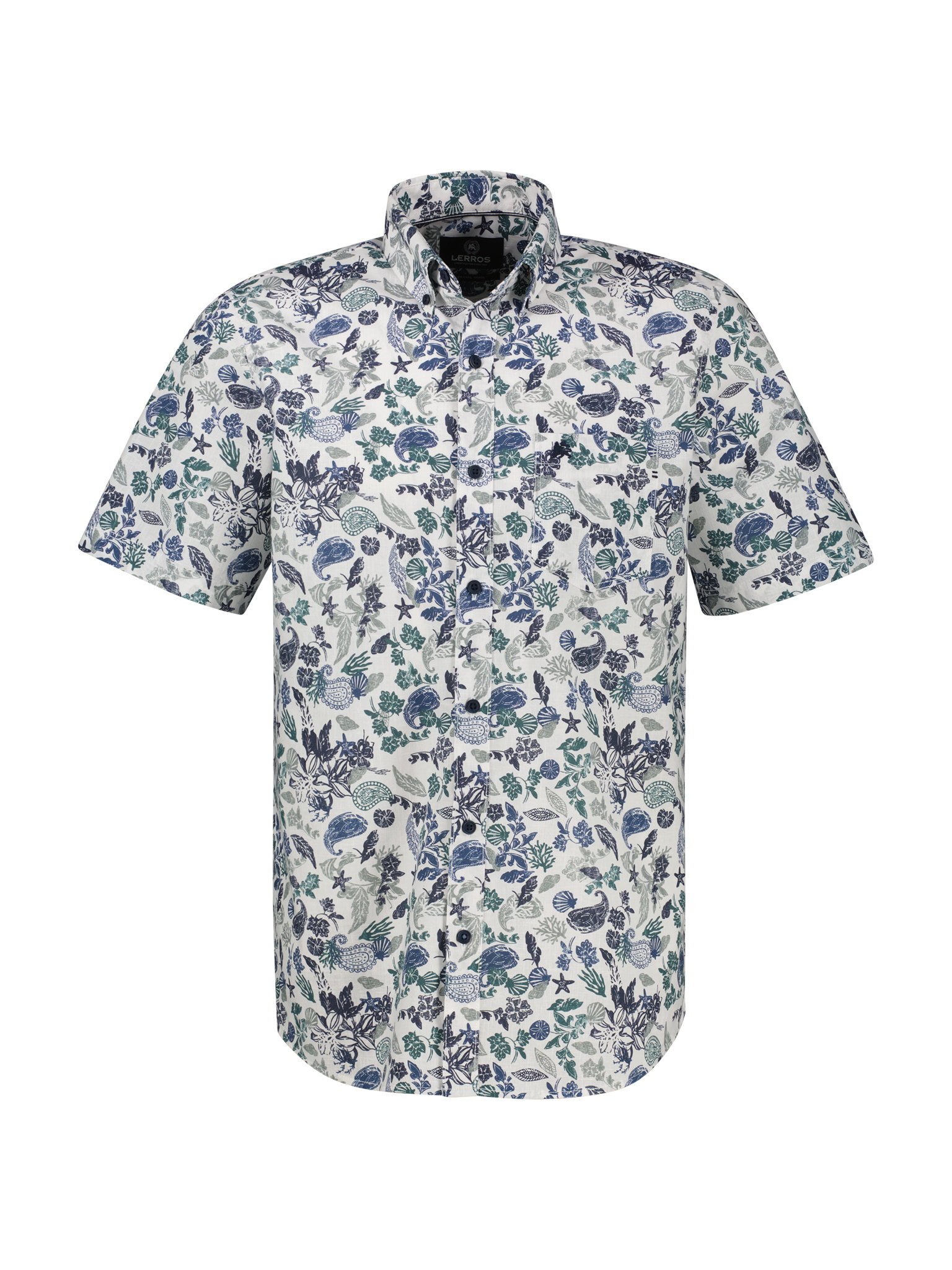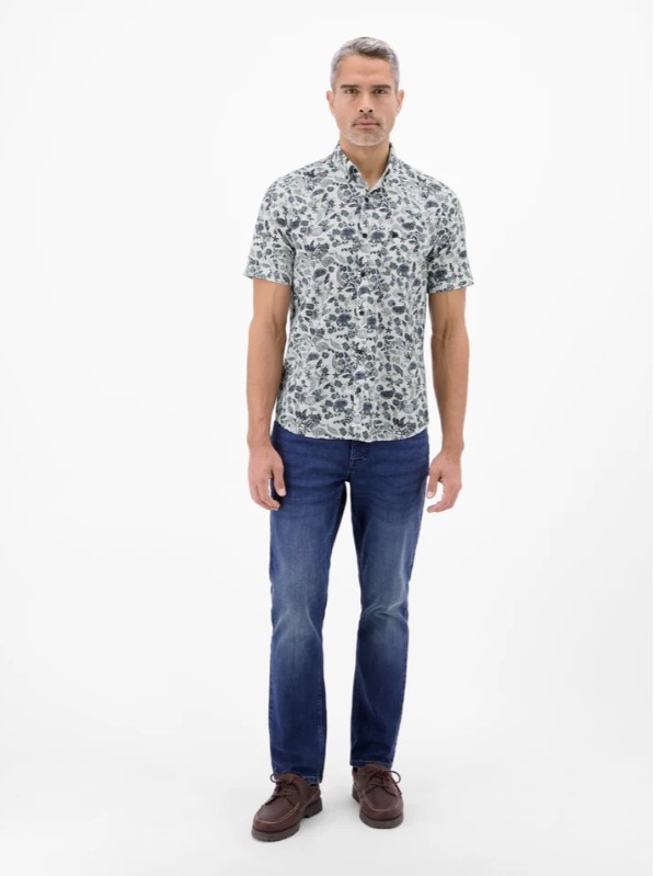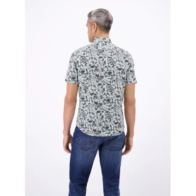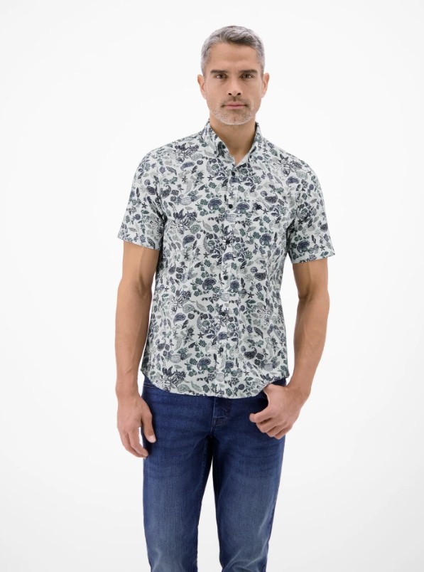 Shirt met korte mouwen en een sportieve button-down kraag, gemaakt van een ademende katoenmix. Dit LERROS herenshirt met korte mouwen heeft een zomers bloemenpatroon en een casual uitstraling. Perfect voor op reis of in de vrije tijd, ideaal voor warmer weer. Combineer het met een eenvoudige chino, bermuda of gewone korte broek voor een moderne look. De luchtige stof zorgt voor frisheid en comfort, terwijl fijne details zoals borduurwerk en een borstzak het ontwerp completeren.