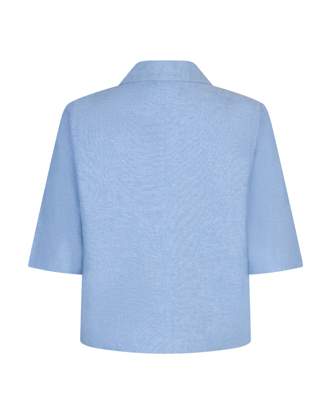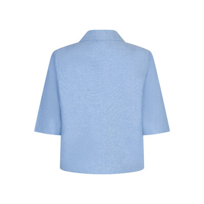Red Button Blazer Linnen Viscose Melange Lightblue