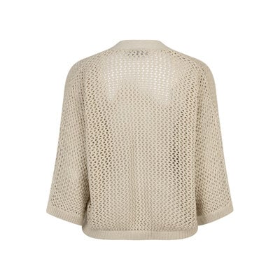De Cardigan Pointelle is een ajour gebreid vest van een zachte kwaliteit. Het vest heeft driekwart mouwen en een geribd boord bij de hals, mouwen en aan de onderkant. De Cardigan Pointelle is beschikbaar in verschillende kleuren.