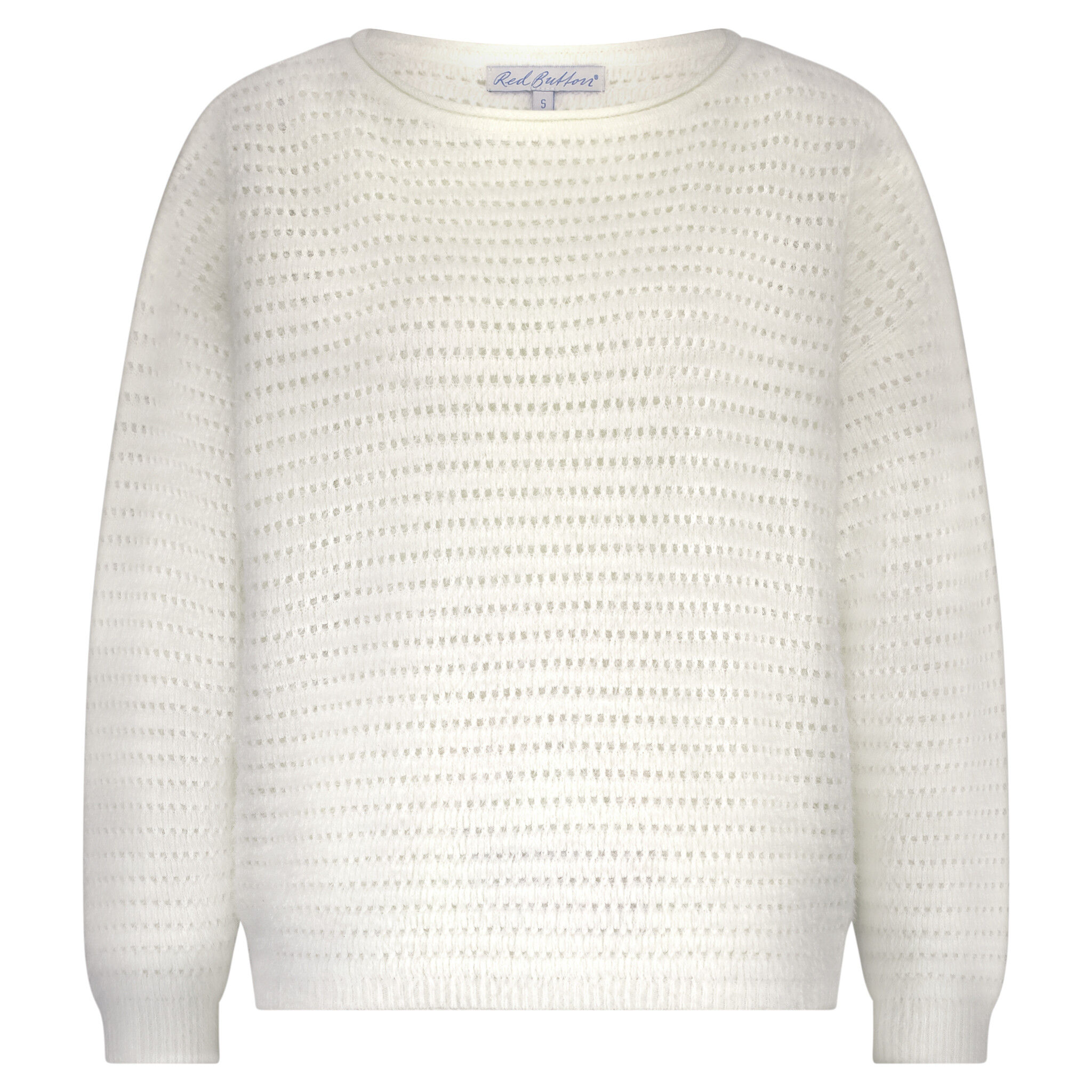 Red Button Fluffy Ajour Sweater Ecru