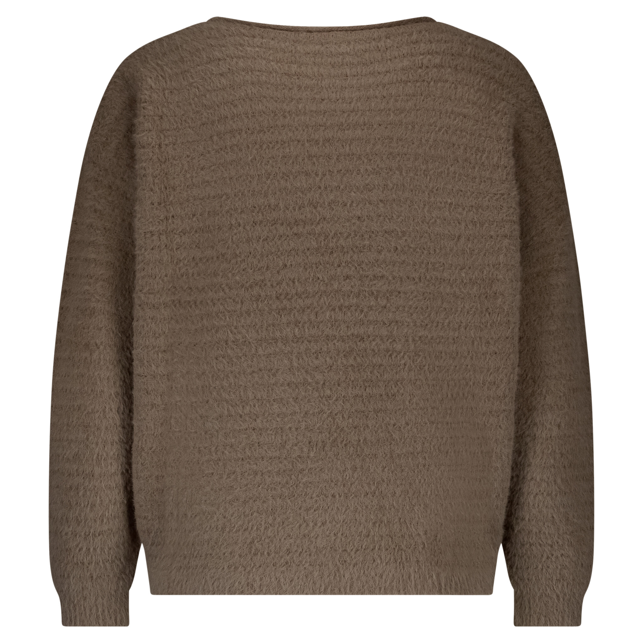 Red Button Fluffy Ajour Sweater Warm Taupe