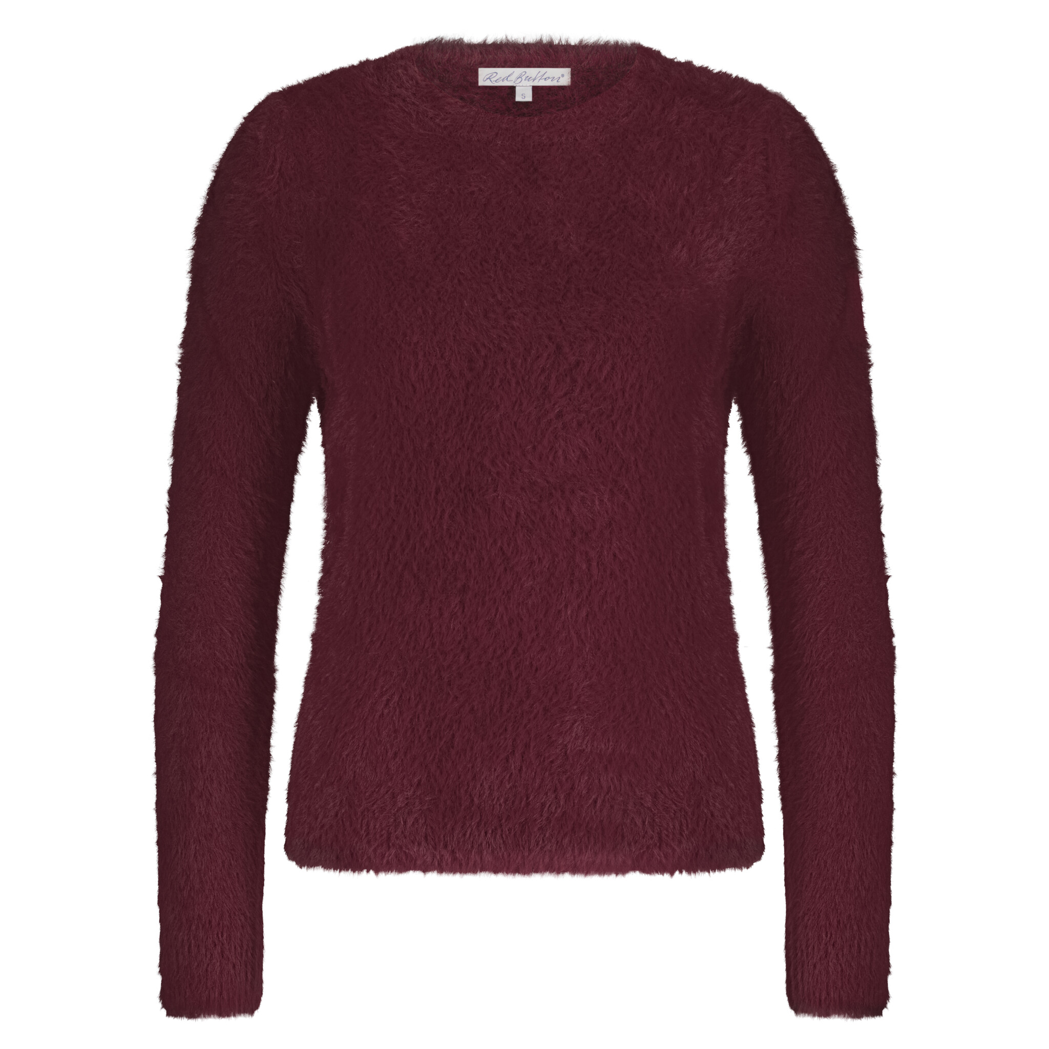 Red Button Fuzzy Puff Sleeve Trui Ruby