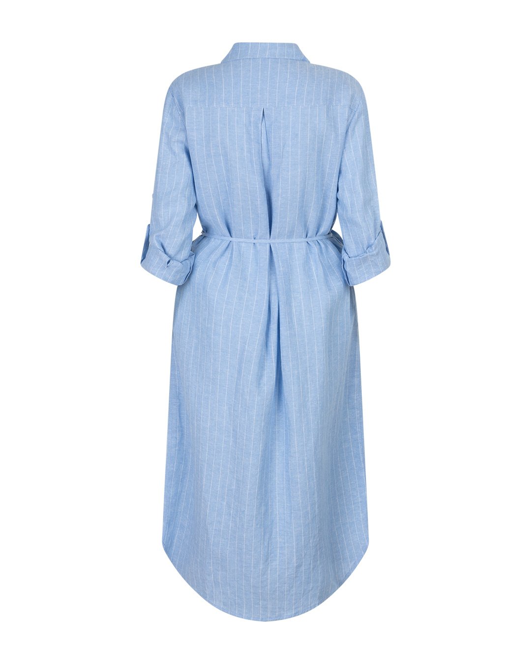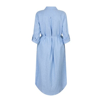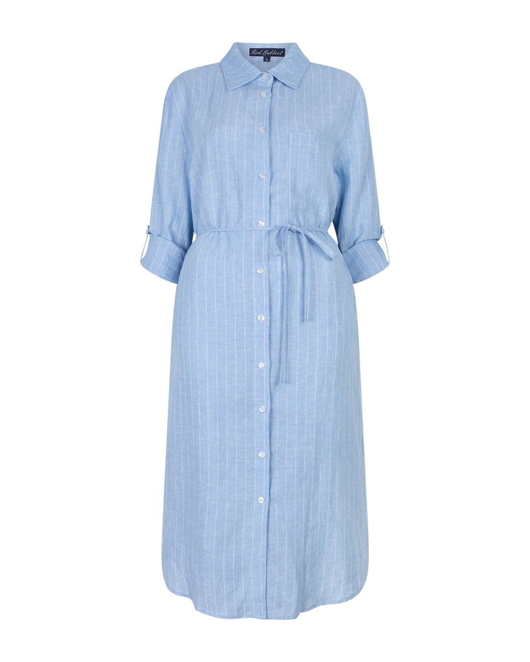 Red Button Shirtdress Linnen Viscose Pinstripe Light Blue