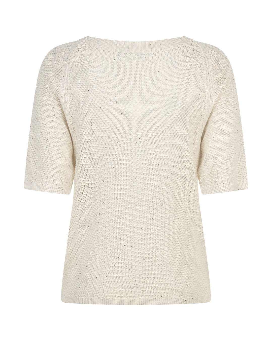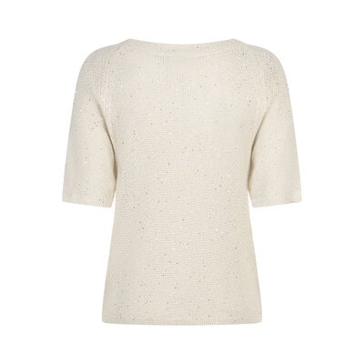 De Sweet Sequins is een gebreide top met glitters en korte mouwen. De top heeft een ronde hals en een geribd boord bij de hals, mouwen en aan de onderkant.