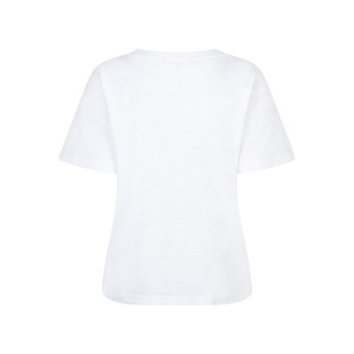 De Tee Temmy Butterfly is een wit t-shirt met korte mouwen, een regular fit en een ronde hals. Het t-shirt heeft een print op de borst en is verkrijgbaar in verschillende kleuren. Middenachterlengte: 62 cm.