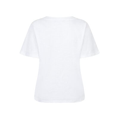 De Tee Temmy Foil is een wit t-shirt met korte mouwen, een regular fit en een ronde hals. Het t-shirt heeft een metallic folieprint op de borst en is verkrijgbaar in de kleur white/gold.