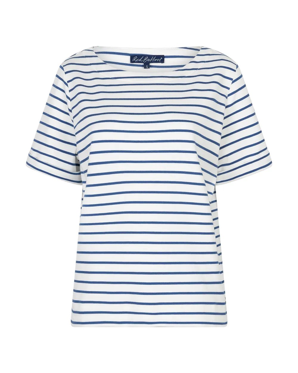Red Button Terry Stripe Short Sleeve Jeans Blue
