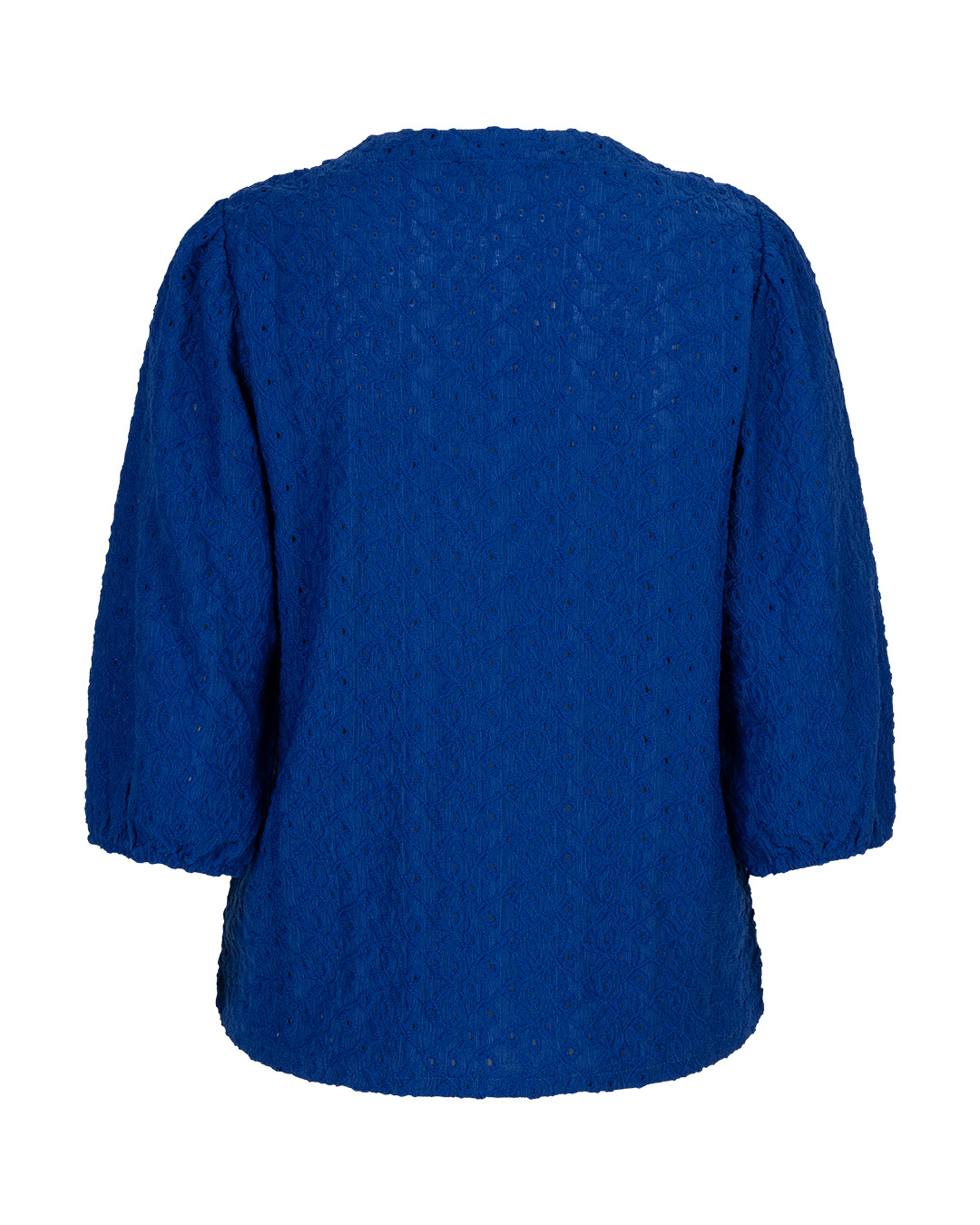 De Top Ajour is gemaakt van broderie en heeft een V-hals. De top heeft driekwart ballon mouwen met elastiek aan het uiteinde van de mouw. De Top Ajour is verkrijgbaar in verschillende kleuren.