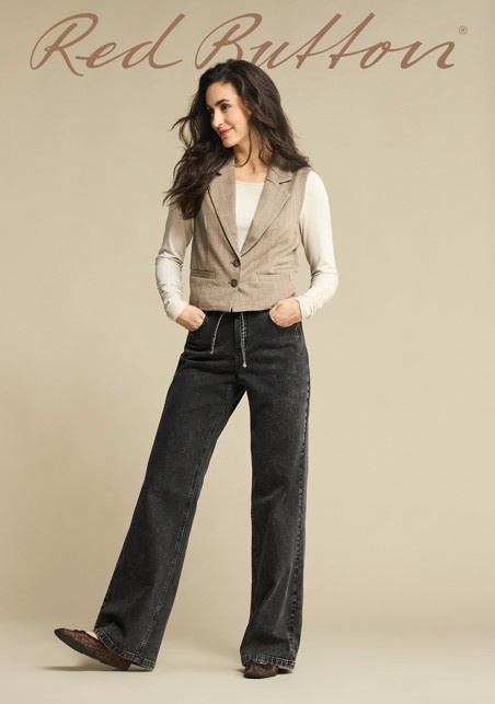 Red Button Gilet Punta Pinstripe Warm Taupe