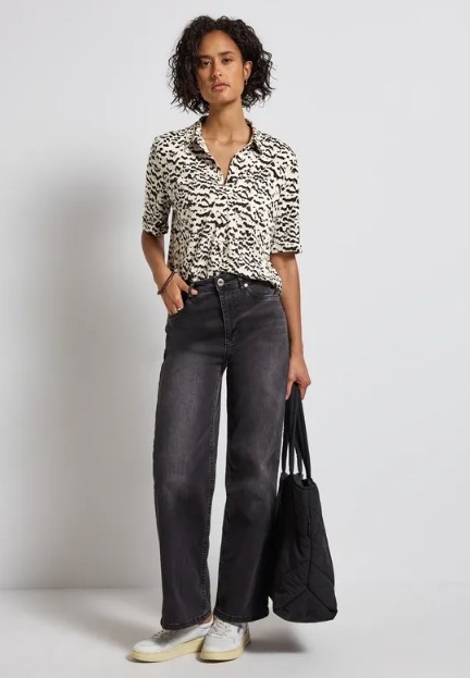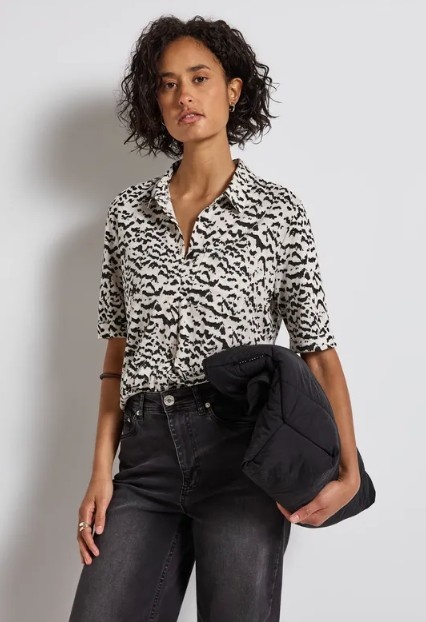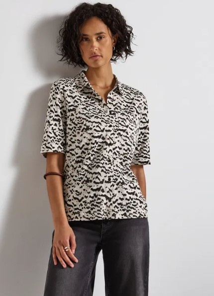 Street One Printed Blouse Shirt Pocket Morning Beige