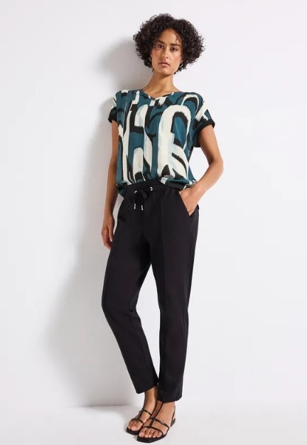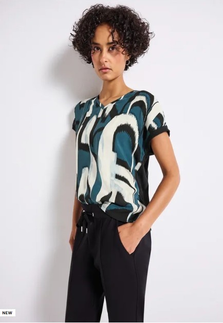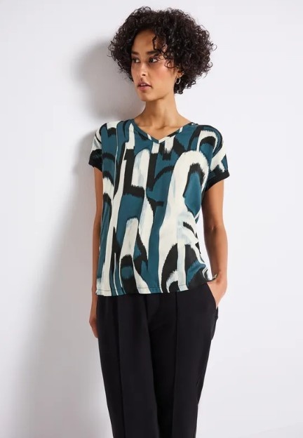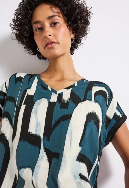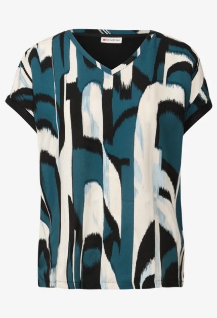 Street One Printed Mat-Mix V-Neck Shirt Tide Blue