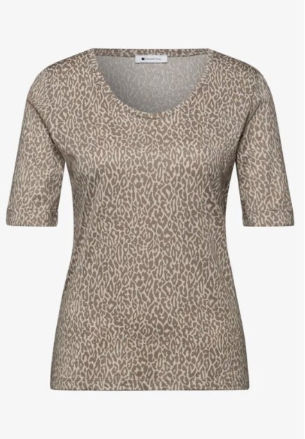 Street One Printed Shirt Rounded V-Neck Light Terra Mocha