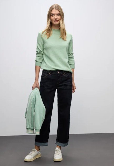 Street One Rolled Edge Collar Sweater Serene Green Melange