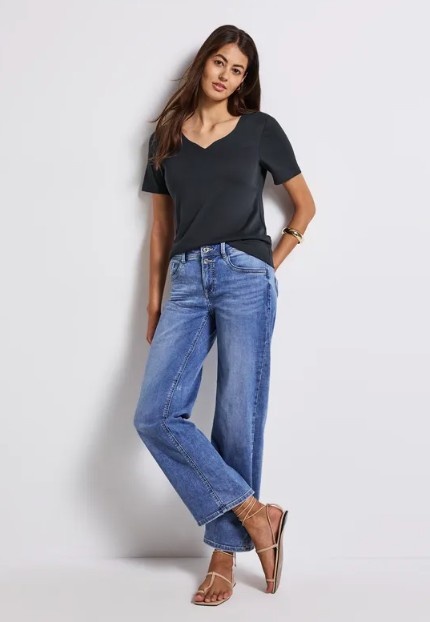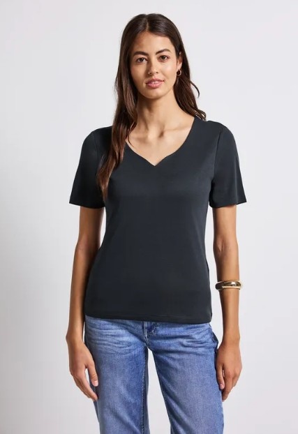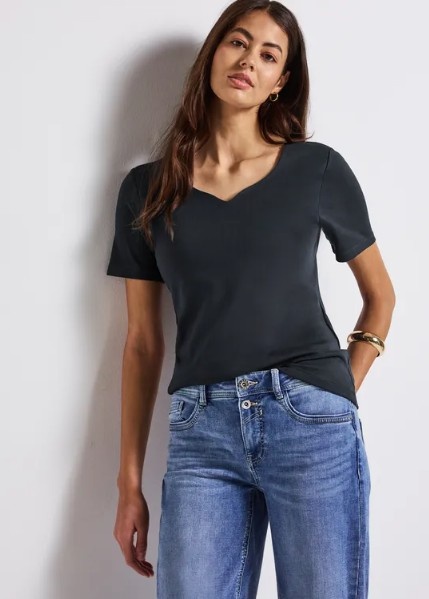Street One Shirt Heart Neckline Shape Deepwater Blue