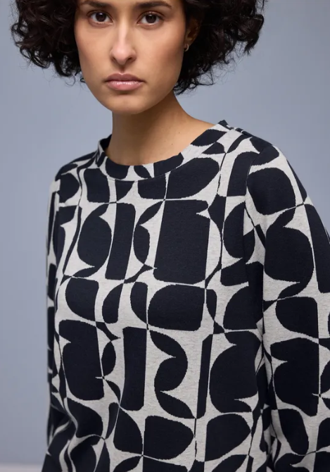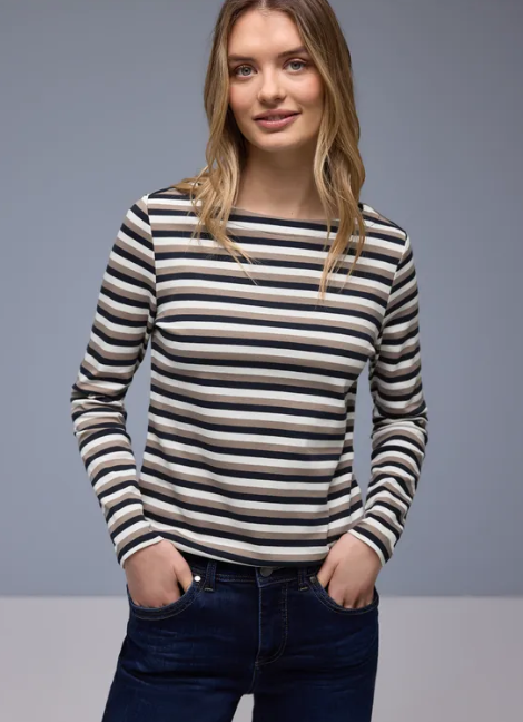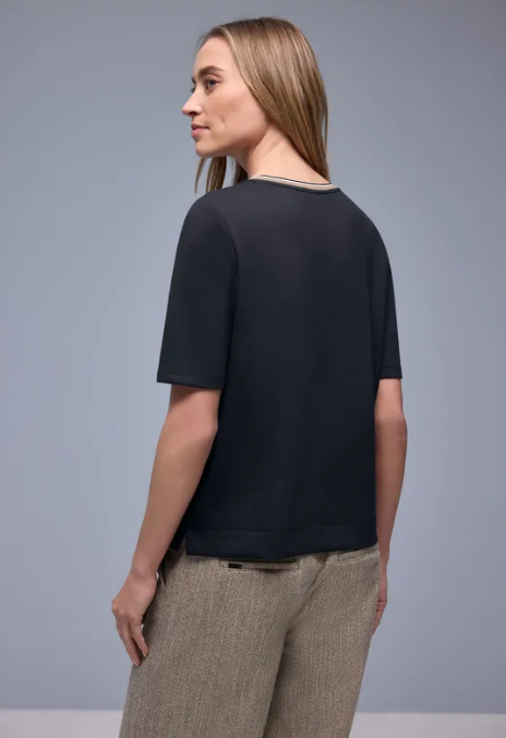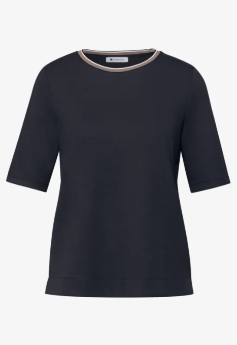 Street One Shirt Striped Collar Shadowed Navy