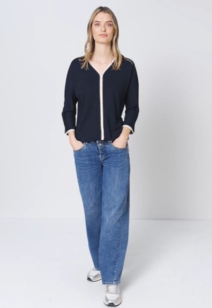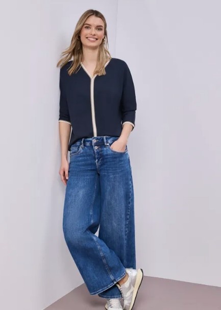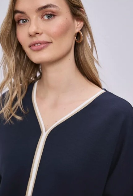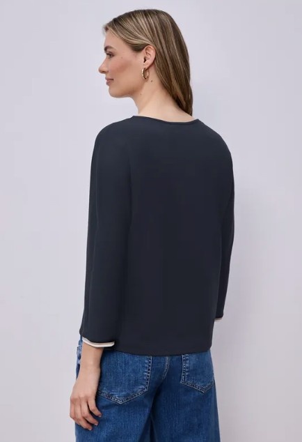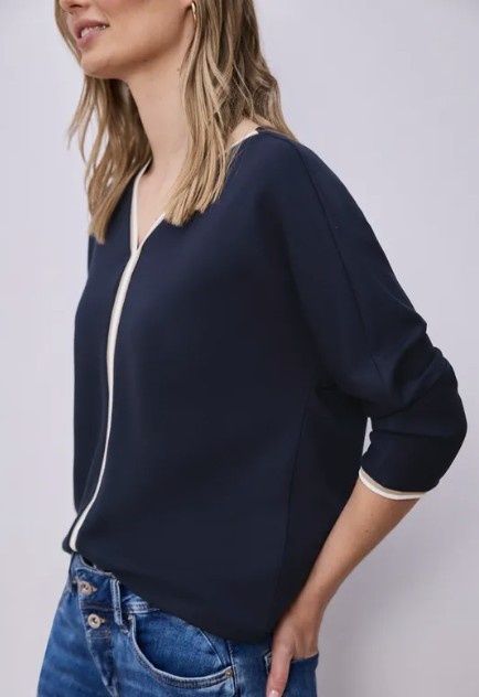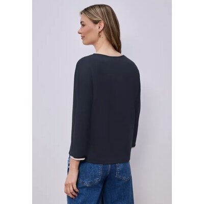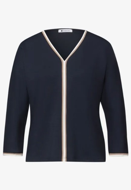 Street One Shirt Striped Panel Shadowed Navy