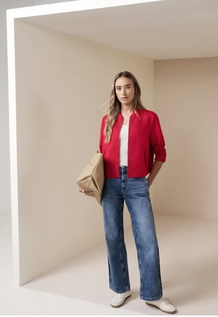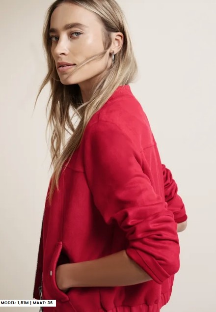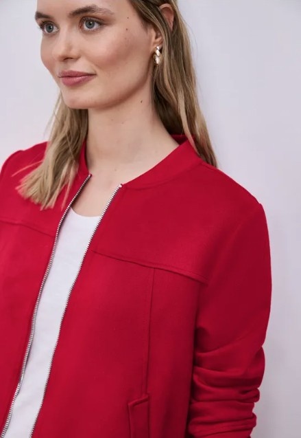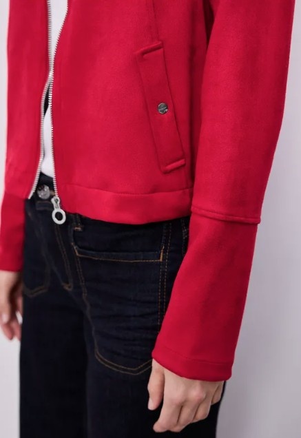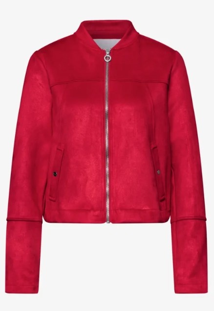 Street One Short Velours Jacket Bomber Collar Salsa Red