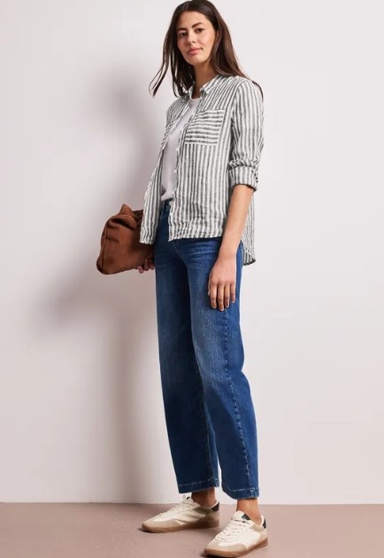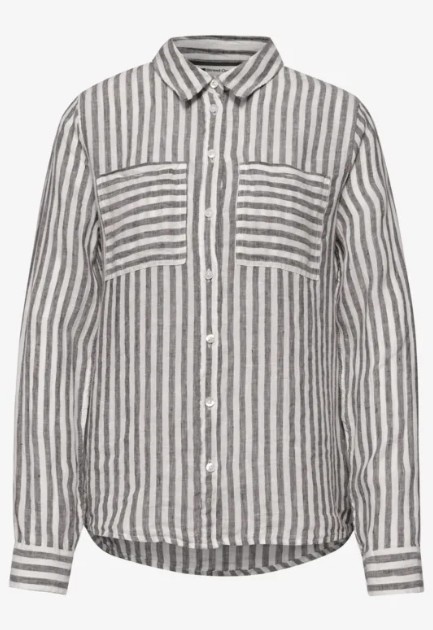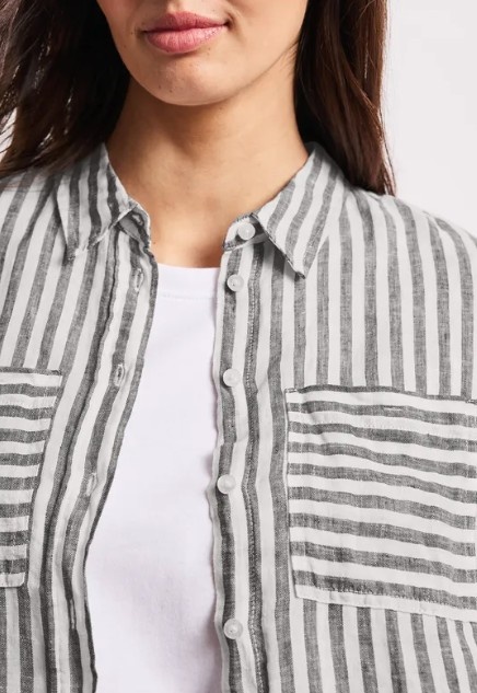 Street One Striped Shirtcollarblouse with Pocke Espresso Brown