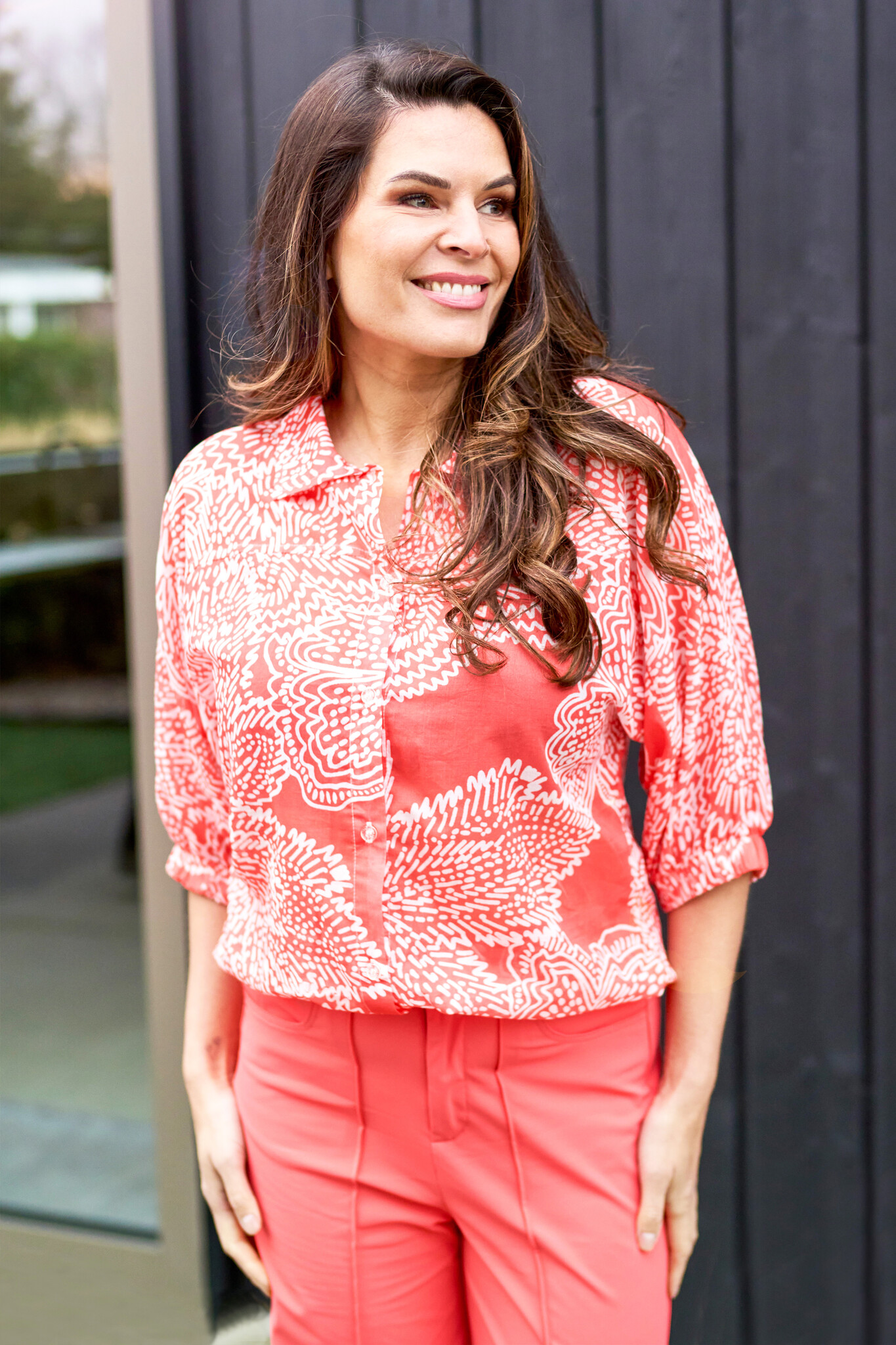 Zoso Printed Woven Blouse Coral